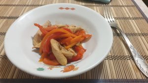 Делала и со свининой и с курицей. В сковородку прямо просится фунчоза, но не оказалось под рукой. Простое хорошее блюдо.